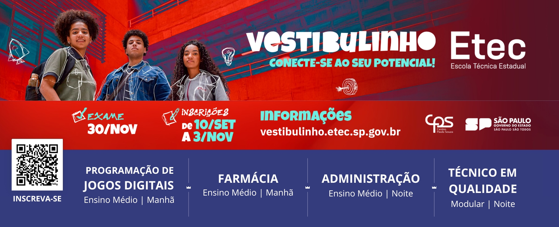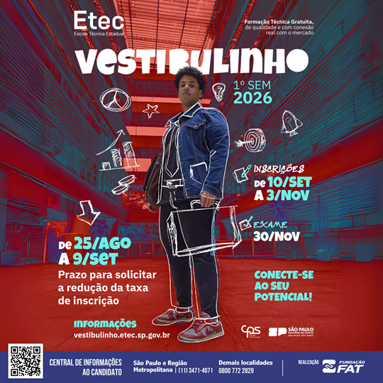 Período de inscrições do Vestibulinho 1º Semestre de 2026 10 set a 03 nov