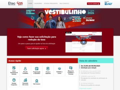 As inscrições vão até às 15h do dia 03 de novembro de 2025 e são feitas exclusivamente online através do site do Vestibulinho. A taxa de inscrição é de R$29 e poderá ser paga até o último dia das inscrições.