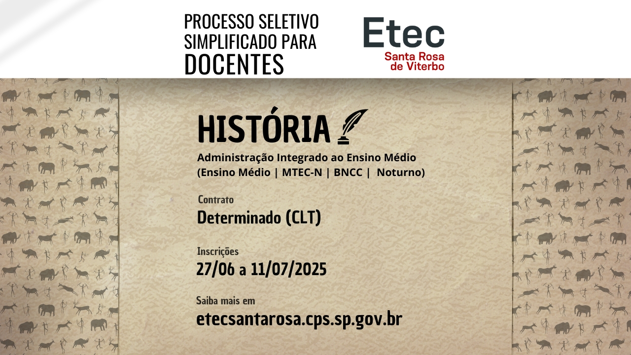Estamos com vaga aberta! Mais um Processo Seletivo Simplificado para Docentes (PSS) está em andamento em nossa unidade escolar, desta vez para professores de História, sob o edital nº237/08/2025, componente curricular da Base Nacional Comum Curricular (BNCC), para lecionar para os alunos do ensino médio no curso de Administração Integrado ao Ensino Médio durante o período da noite. O candidato que desejar se inscrever deverá possuir horário disponível entre 18:00 e 23:00 horas da noite para o correto alinhamento da grade de horário das aulas.